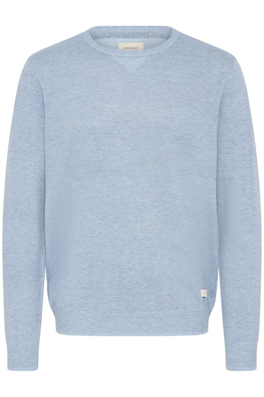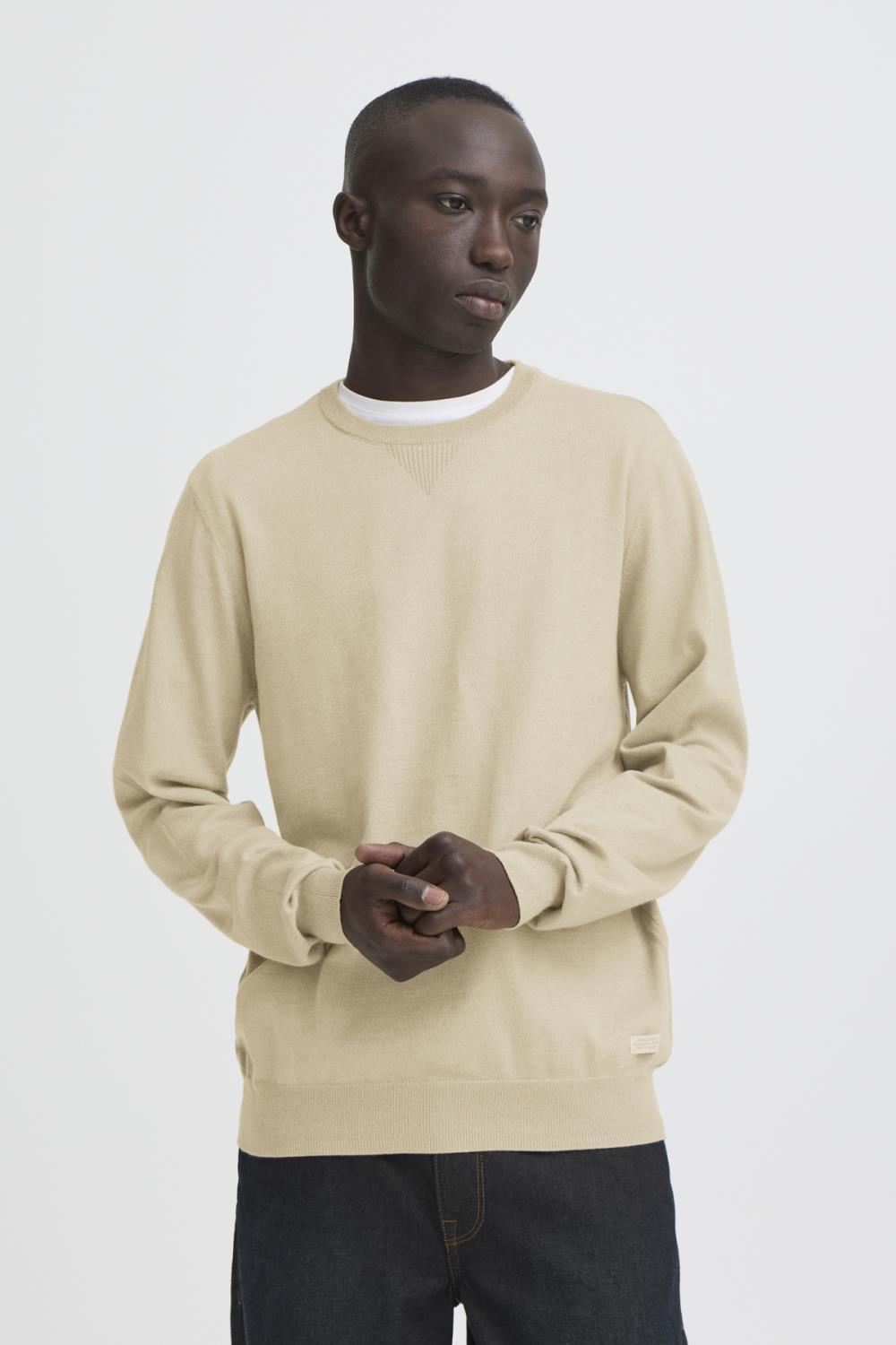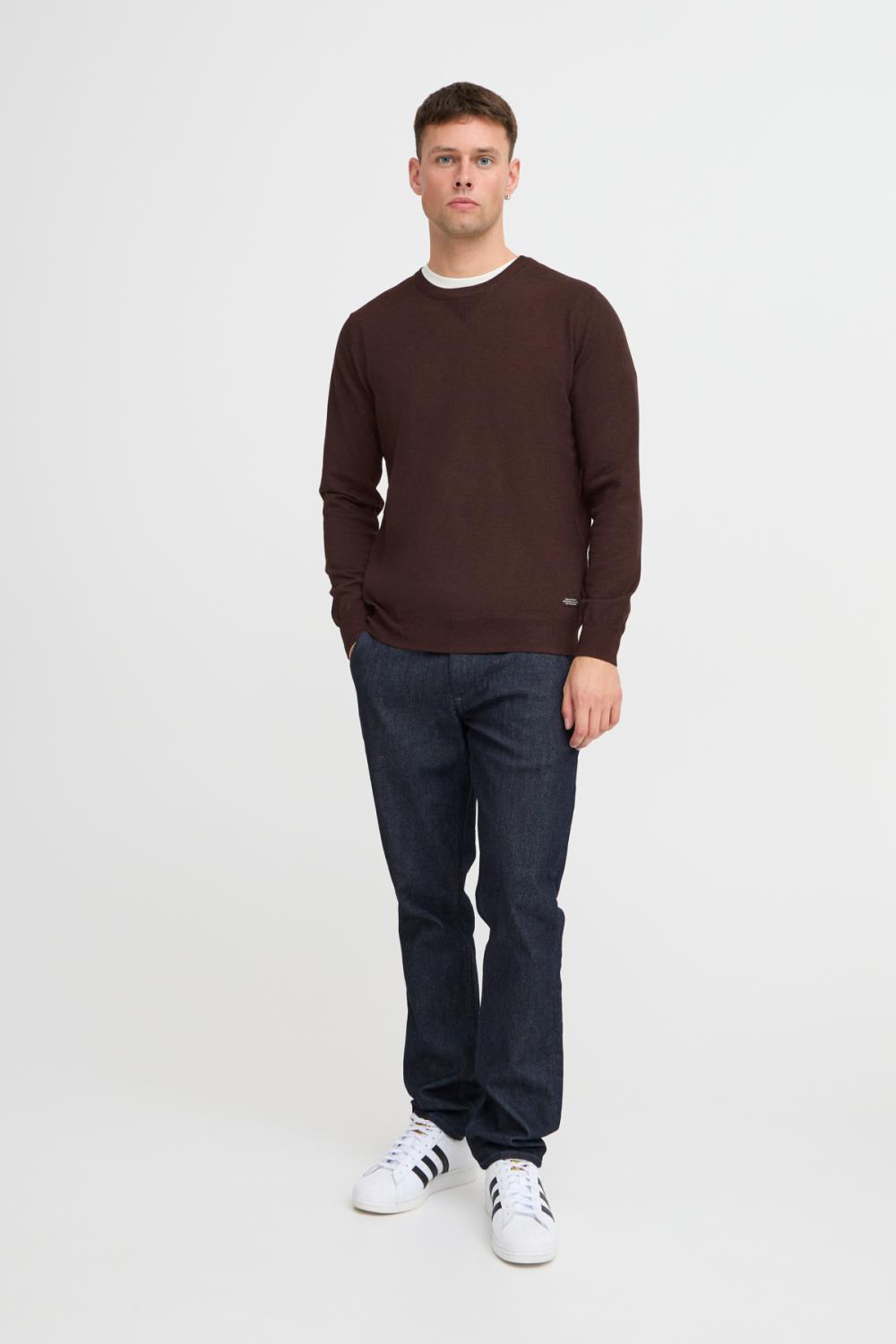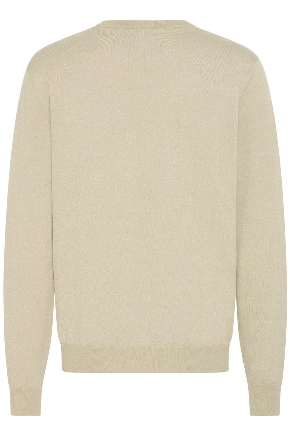 Pullover med rund hals. Ribbestrikk i krage og ermer.