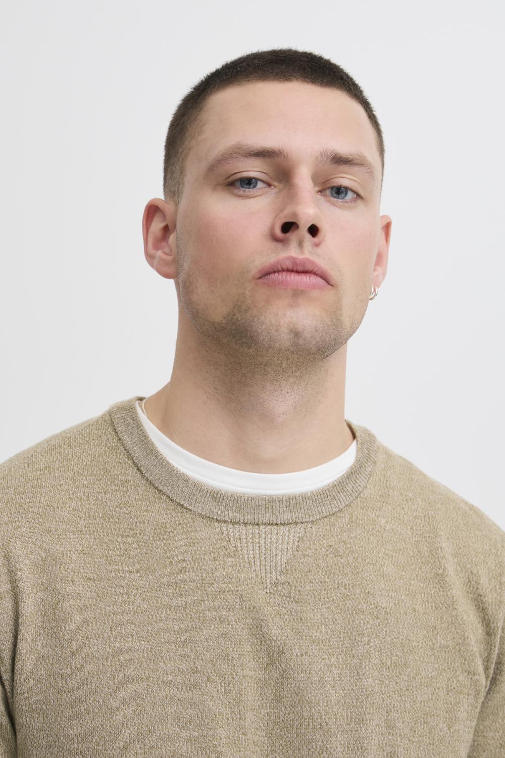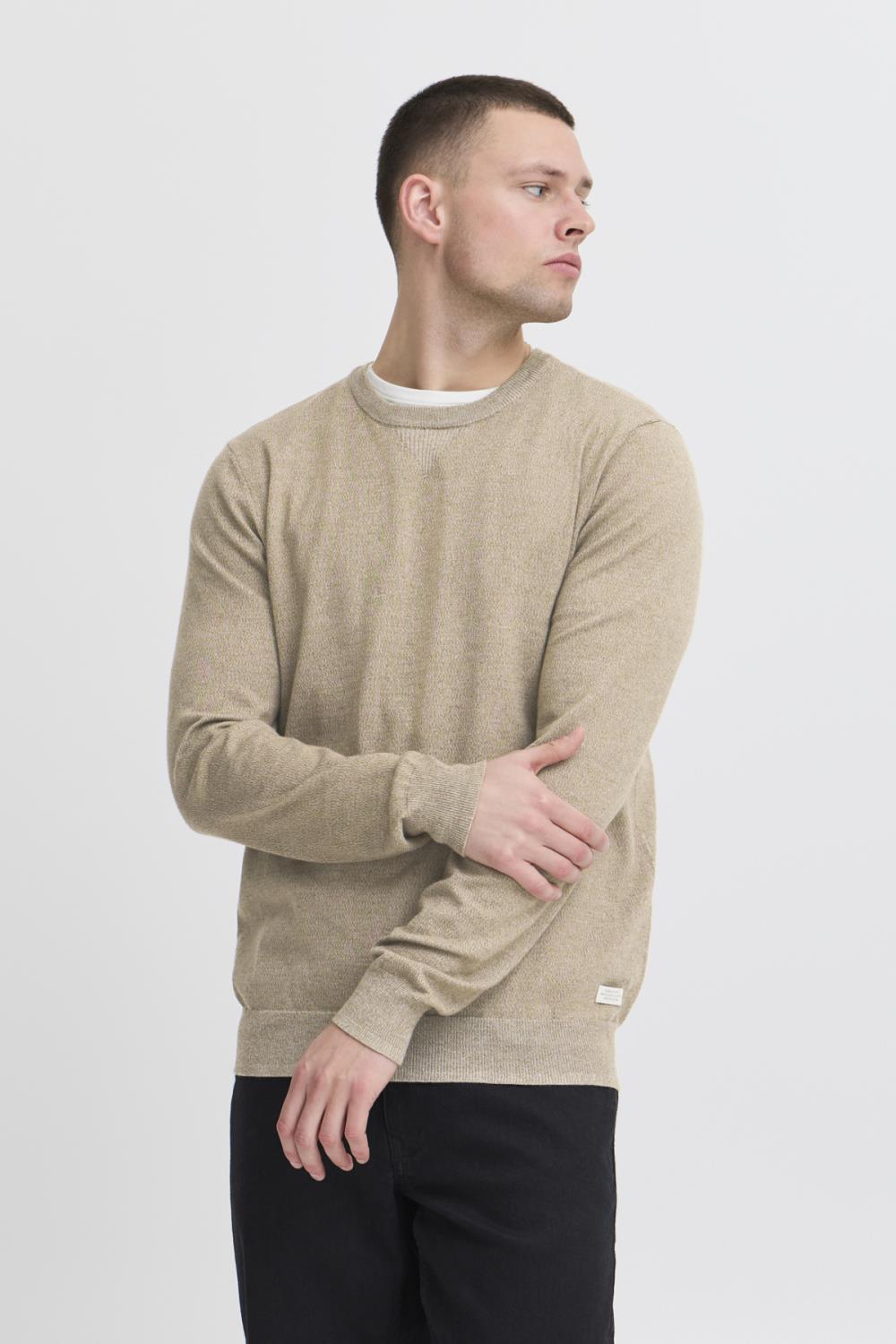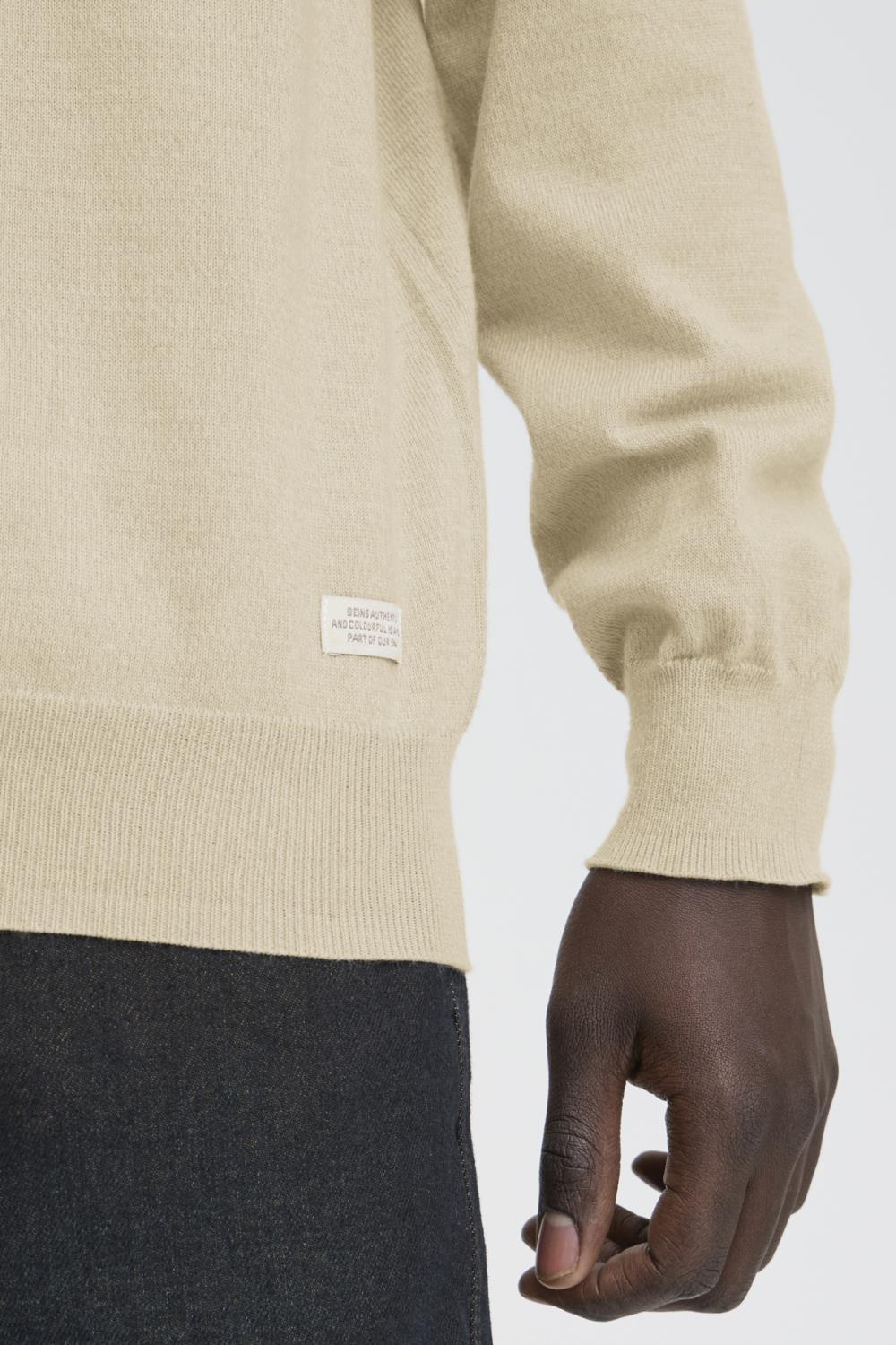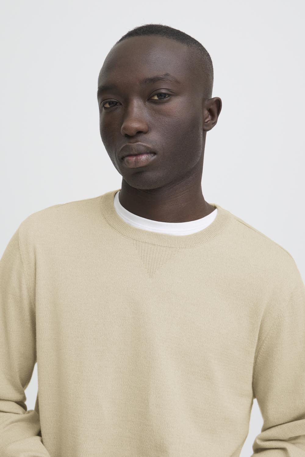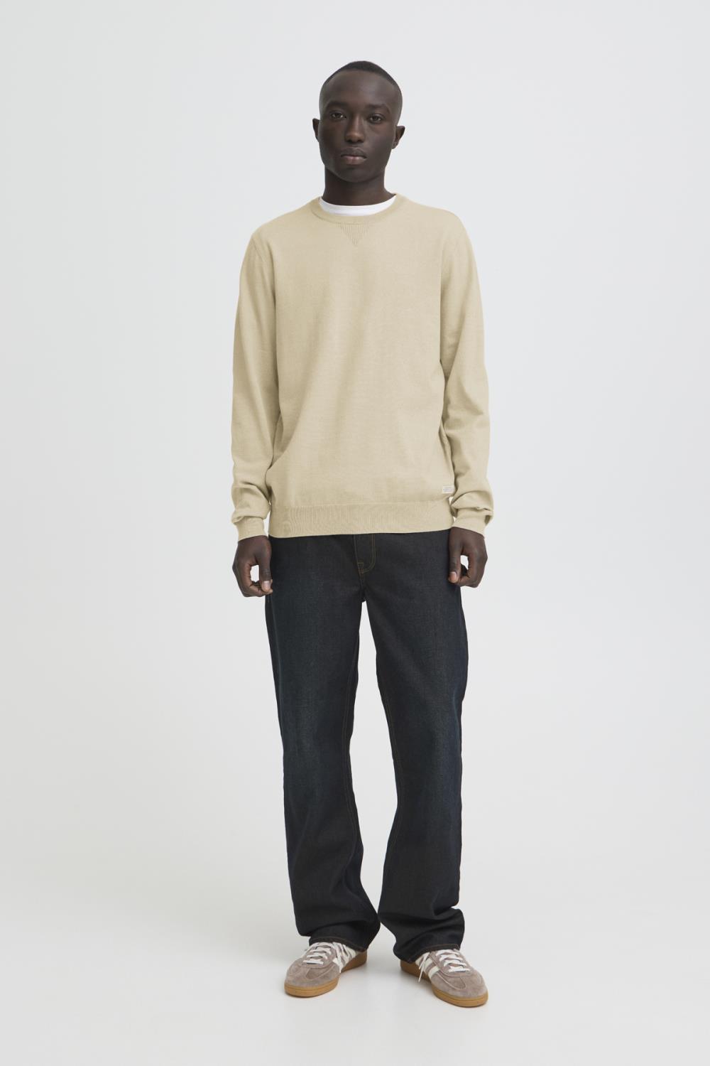 Pullover med rund hals. Ribbestrikk i krage og ermer.