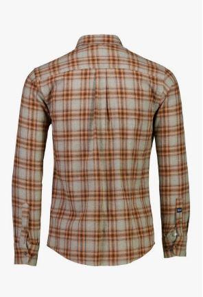 Fin, klassisk skjorte i flanell. Brystlomme. Lukkast med knappar farmme, så er det knappar på kragesnippen og ved handledd. Ved handledda er det doble knappar slik at du kan justere vidda der sjølv.