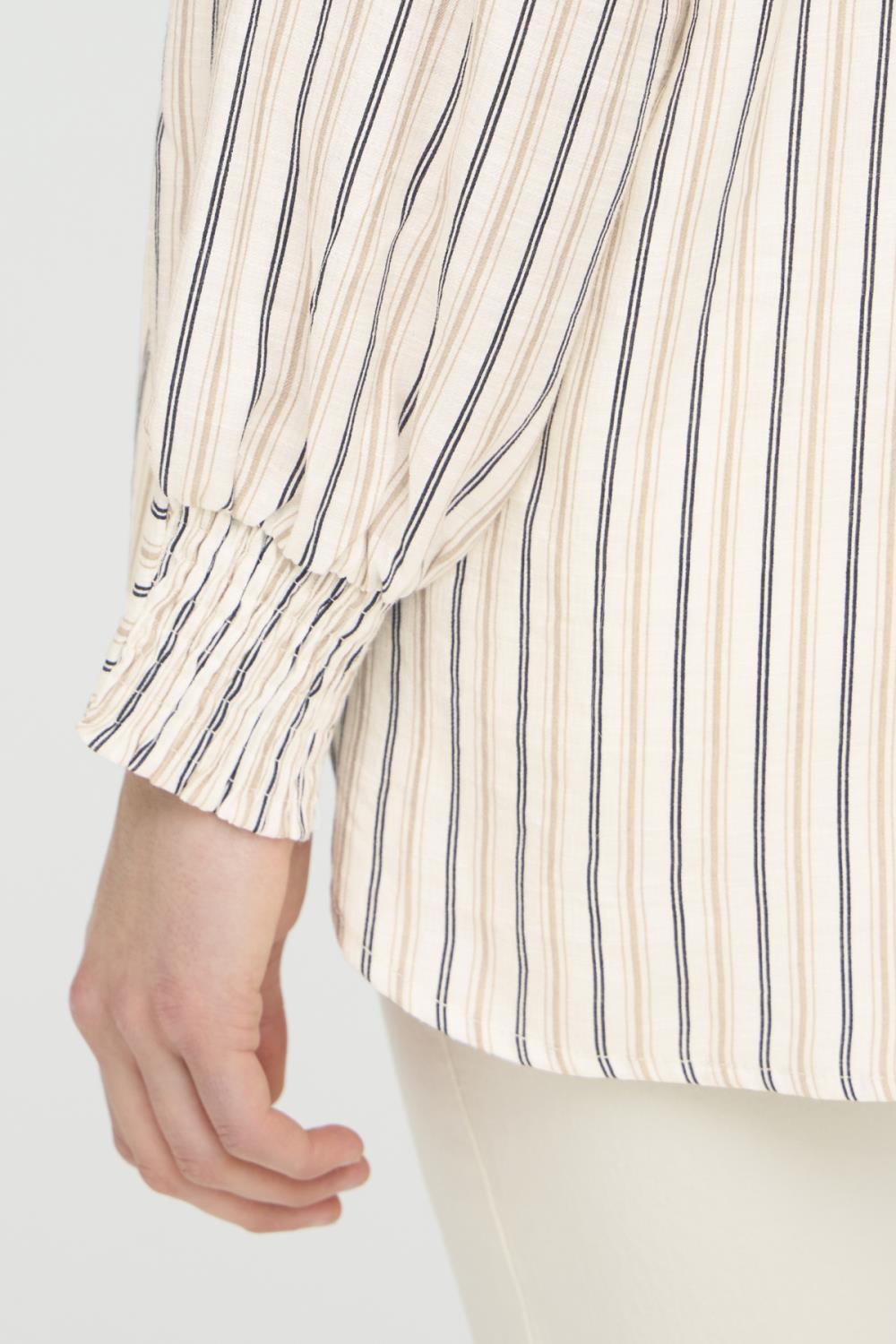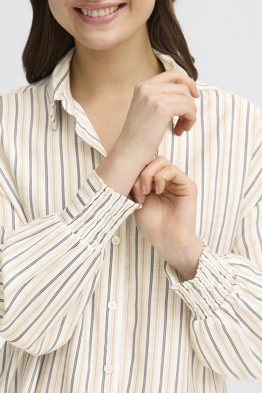 Regular fit. Klassisk skjortekrage, og skjorta lukkast med knappar framme. Smockstrikk ved handledd. Så fin til di favorittjeans!