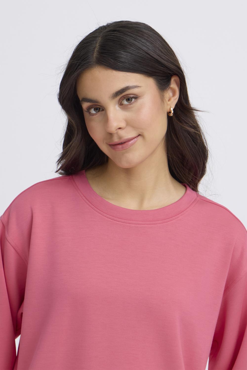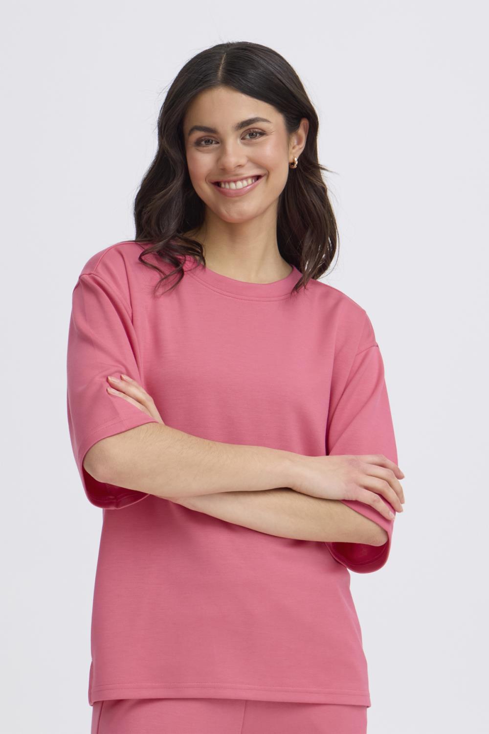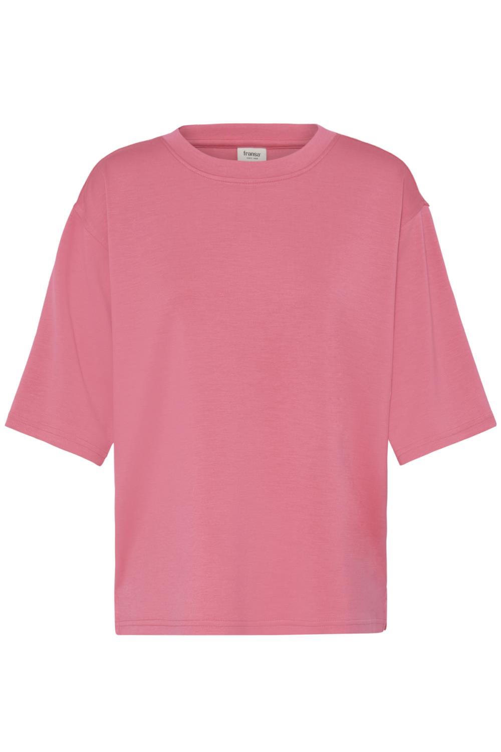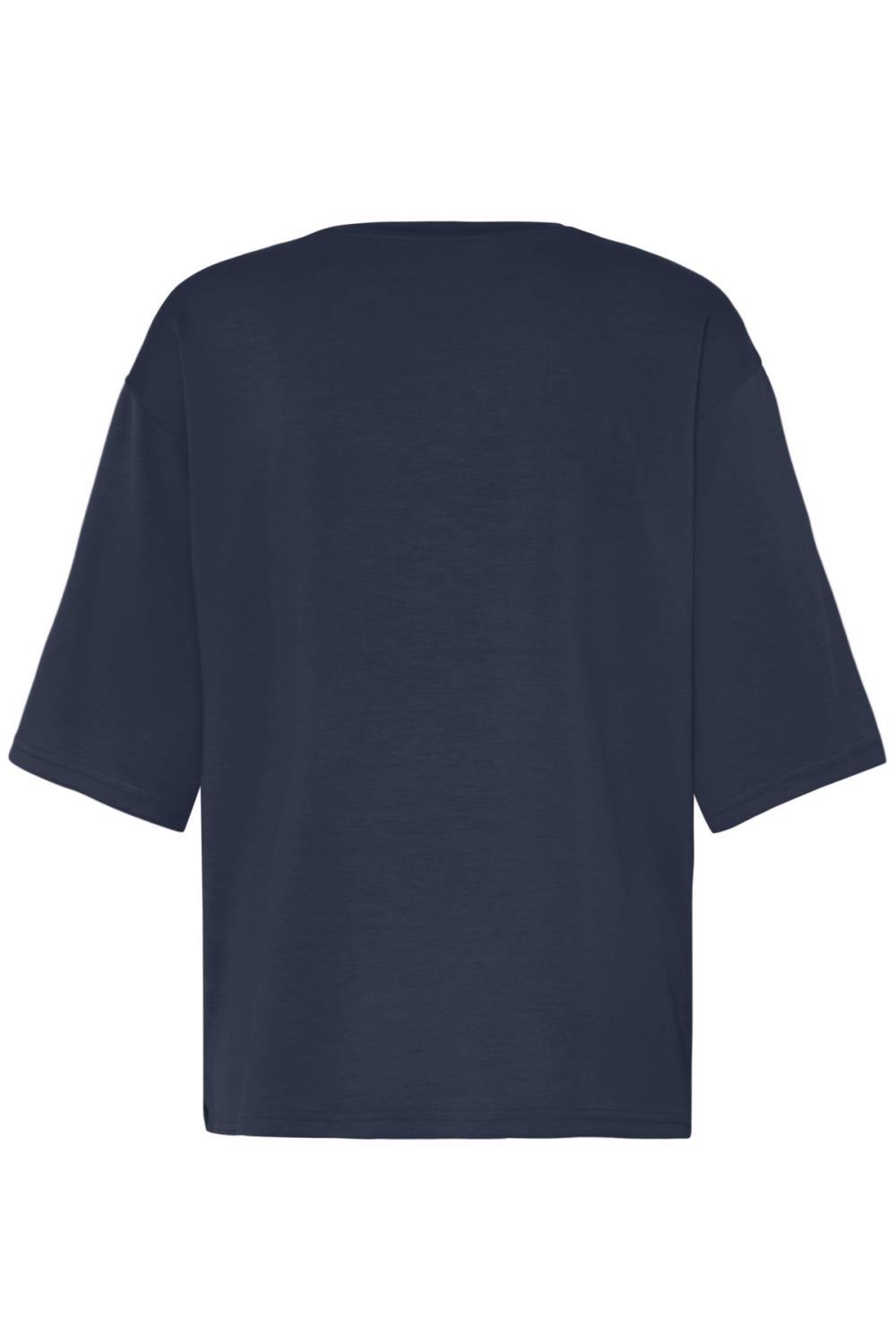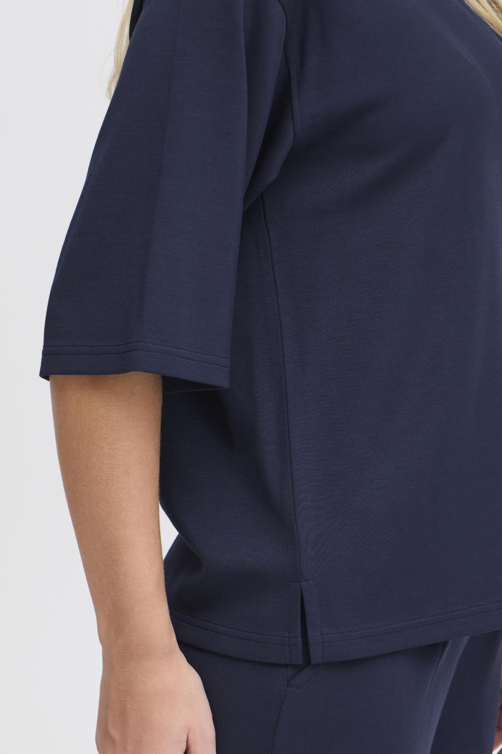 Relaxed fit med boxy passform. Rund hals, albogelange ermer og liten splitt nede.