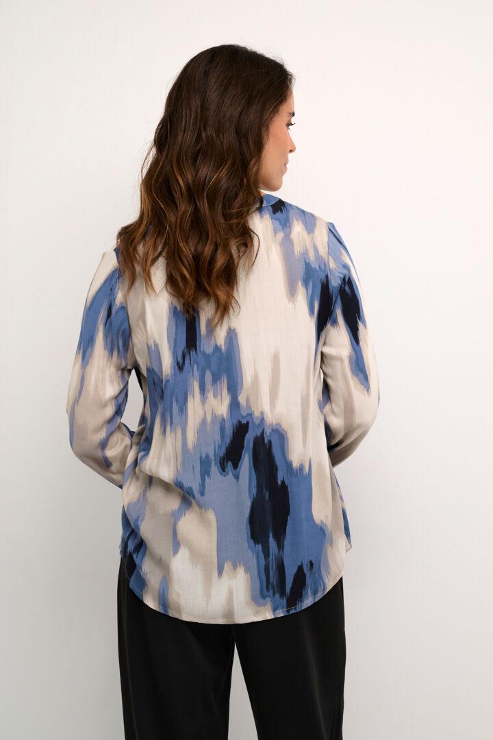 Bluse frå Kaffe i regular fit og v-hals. Lange armer med knapp i erme.