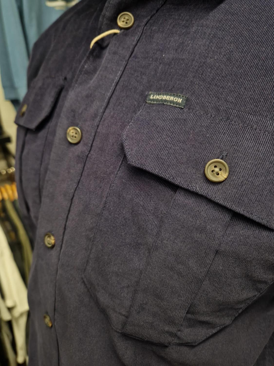 Skjorte frå Lindbergh i fløyel. Relaxed fit.To brystlommer, og doble knappar ved handledd gjer at skjorta kan justerast etter behov. Kan fint brukast som overskjorte.