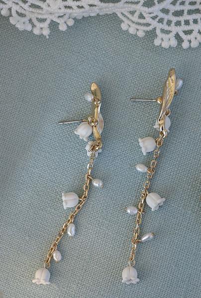 Delikate øyredobbar frå kolleksjonen Lilies & Pearles. Kombinasjonen av emaljerte liljekonvaller med ekte ferskvannsperler er så nydeleg!
